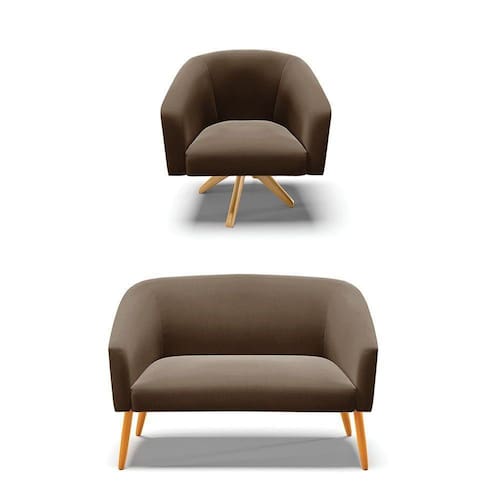 A Namoradeira Stella além de linda vem com um design moderno. Ideal para comportar duas pessoas. Projetada para fornecer segurança, bem-estar e aconchego para quem se assentar. Com um acabamento rico em detalhes, o tecido em Suede, no seu encosto e no assento é composta por espuma mais densa D-23. Os pés são em palito de madeira castanho, tornando o móvel ainda mais resistente. Ela combina com qualquer decoração. Fala aí se não é uma ótima oportunidade!! Escolha seu kit 01 Namoradeira 02 lugares e 01 Poltrona com base giratória de madeira e crie uma decoração romântica, perfeita para casais apaixonados desfrutarem um tempo juntos.