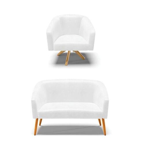 A Namoradeira Stella além de linda vem com um design moderno. Ideal para comportar duas pessoas. Projetada para fornecer segurança, bem-estar e aconchego para quem se assentar. Com um acabamento rico em detalhes, o tecido em Corano no tom Branco, no seu encosto e no assento é composta por espuma mais densa D-23. Os pés são em palito de madeira castanho, tornando o móvel ainda mais resistente. Ela combina com qualquer decoração. Fala aí se não é uma ótima oportunidade!! Escolha seu kit 01 Namoradeira 02 lugares e 01 Poltrona com base giratória de madeira e crie uma decoração romântica, perfeita para casais apaixonados desfrutarem um tempo juntos.
