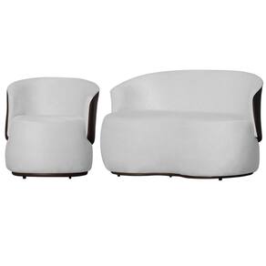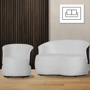 Kit 1 Namoradeira e 1 Poltrona Decorativa Orgânica Beatriz Suede Composê Corino Marrom - Estopar - Branco