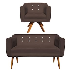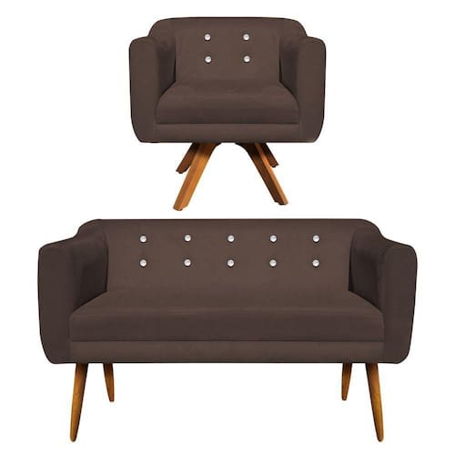Kit 1 Namoradeira e 1 Poltrona Giratória Julia Suede Marrom