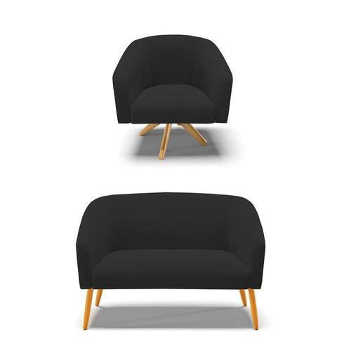 A Namoradeira Stella além de linda vem com um design moderno. Ideal para comportar duas pessoas. Projetada para fornecer segurança, bem-estar e aconchego para quem se assentar. Com um acabamento rico em detalhes, o tecido em Veludo no tom Preto, no seu encosto e no assento é composta por espuma mais densa D-23. Os pés são em palito de madeira castanho, tornando o móvel ainda mais resistente. Ela combina com qualquer decoração. Fala aí se não é uma ótima oportunidade!! Escolha seu kit 01 Namoradeira 02 lugares e 01 Poltrona com base giratória de madeira e crie uma decoração romântica, perfeita para casais apaixonados desfrutarem um tempo juntos.