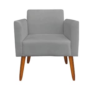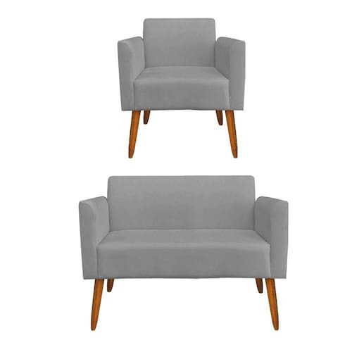 Kit 01 Namoradeira e 01 Poltrona Marisa Suede Grafite Pés Palito Castanho D'Rossi