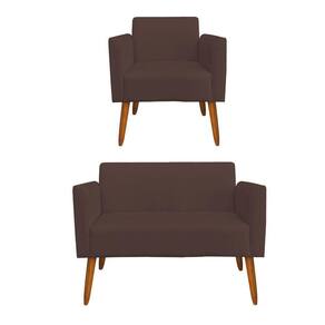 Kit 01 Namoradeira e 01 Poltrona Marisa Suede Marrom Pés Palito Castanho D'Rossi