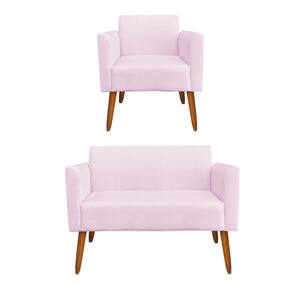 Kit 01 Namoradeira e 01 Poltrona Marisa Suede Rosa Bebê Pés Palito Castanho D'Rossi