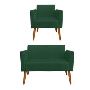 Kit 01 Namoradeira e 01 Poltrona Marisa Suede Verde Pés Palito Castanho D'Rossi