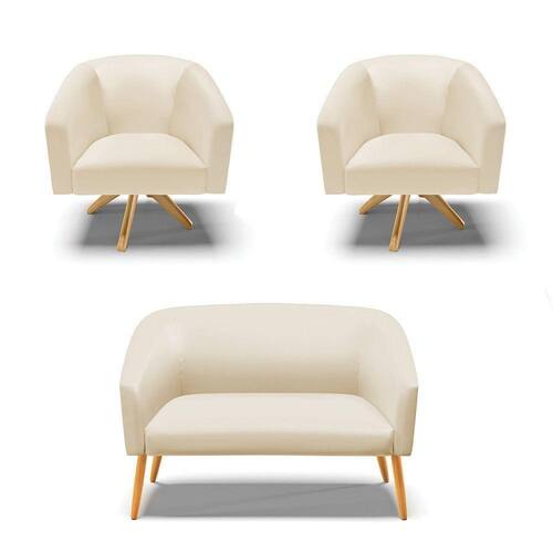 A Namoradeira Stella além de linda vem com um design moderno. Ideal para comportar duas pessoas. Projetada para fornecer segurança, bem-estar e aconchego para quem se assentar. Com um acabamento rico em detalhes, o tecido em Corino, no seu encosto e no assento é composta por espuma mais densa D-23. Os pés são em palito de madeira castanho, tornando o móvel ainda mais resistente. Ela combina com qualquer decoração. Fala aí se não é uma ótima oportunidade!! Escolha seu kit 01 Namoradeira 02 lugares e 02 Poltronas com base giratória de madeira e crie uma decoração romântica, perfeita para casais apaixonados desfrutarem um tempo juntos.