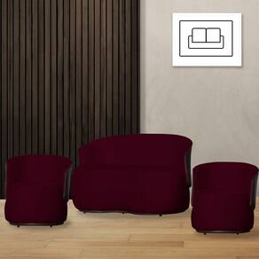 Kit 1 Namoradeira e 2 Poltronas Decorativa Orgânica Beatriz Suede Composê Corino Marrom - Estopar - Bordô