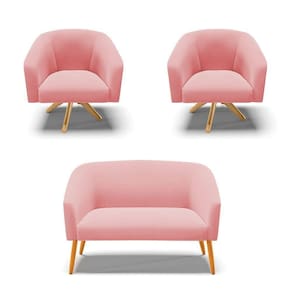 A Namoradeira Stella além de linda vem com um design moderno. Ideal para comportar duas pessoas. Projetada para fornecer segurança, bem-estar e aconchego para quem se assentar. Com um acabamento rico em detalhes, o tecido em Suede no tom Rosê, no seu encosto e no assento é composta por espuma mais densa D-23. Os pés são em palito de madeira castanho, tornando o móvel ainda mais resistente. Ela combina com qualquer decoração. Fala aí se não é uma ótima oportunidade!! Escolha seu kit 01 Namoradeira 02 lugares e 02 Poltronas com base giratória de madeira e crie uma decoração romântica, perfeita para casais apaixonados desfrutarem um tempo juntos.