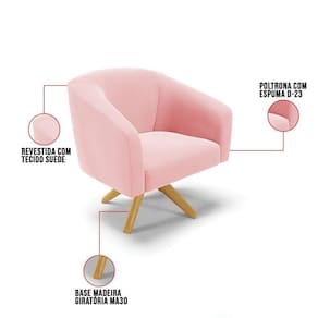 A Namoradeira Stella além de linda vem com um design moderno. Ideal para comportar duas pessoas. Projetada para fornecer segurança, bem-estar e aconchego para quem se assentar. Com um acabamento rico em detalhes, o tecido em Suede no tom Rosa Bebê, no seu encosto e no assento é composta por espuma mais densa D-23. Os pés são em palito de madeira castanho, tornando o móvel ainda mais resistente. Ela combina com qualquer decoração. Fala aí se não é uma ótima oportunidade!! Escolha seu kit 01 Namoradeira 02 lugares e 02 Poltronas com base giratória de madeira e crie uma decoração romântica, perfeita para casais apaixonados desfrutarem um tempo juntos.