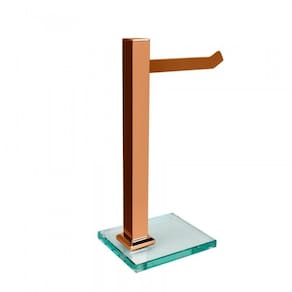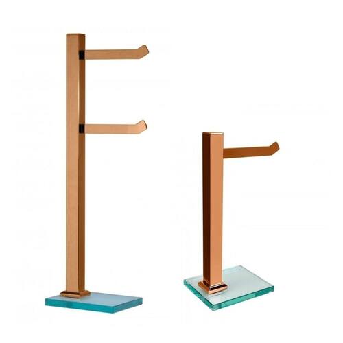 Kit 1 Papeleira de Chão Dupla e 1 Porta Toalhas de Bancada com Vidro Incolor Ducon Metais Rosé Gold