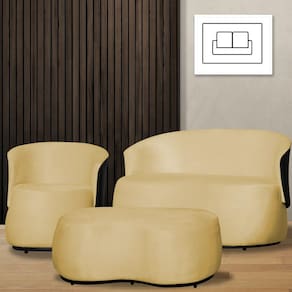 Kit 1 Poltrona 1 Namoradeira e 1 Puff Grande Decorativo Estilo Orgânico Beatriz Suede Composê Corino Preto - Estopar - Amarelo