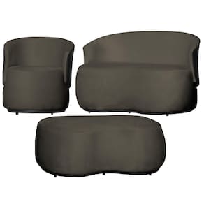 Kit 1 Poltrona 1 Namoradeira e 1 Puff Grande Orgânico Beatriz Veludo Composê Corino Preto - Estopar - Grafite