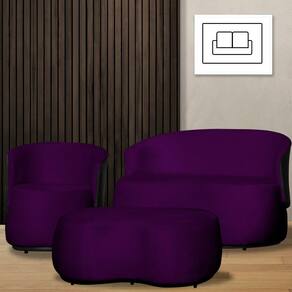 Kit 1 Poltrona 1 Namoradeira e 1 Puff Grande Orgânico Beatriz Veludo Composê Corino Preto - Estopar - Roxo