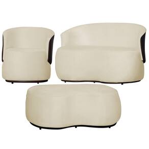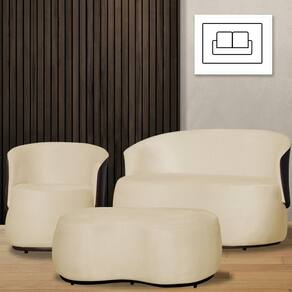 Kit 1 Poltrona 1 Namoradeira e 1 Puff Grande Suede Estilo Orgânico Beatriz Composê Corino Marrom - Estopar - Bege Claro