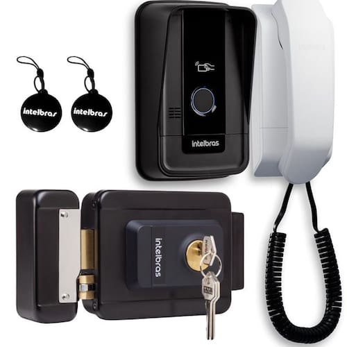 Kit 1 porteiro interfone tag rfid ipr1010 id + 1 fechadura fx1500 intelbras ipr 1010 fx 1500 Inclui: 1x interfone porteiro tag rfid residencial intelbras ipr1010 id 1x fechadura elétrica cilindro fixo fx1500 preta Marcas que são referências nacionais em segurança residencial.