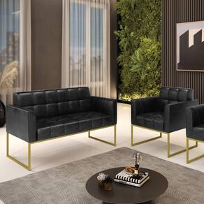 Estrutura: Madeira Eucalipto Espuma: D-23 Tecido: Corano Tipo de pés: Base Metálica Industrial Peso suportado: Até 120 Kg Garantia: 90 dias contra defeito de fabricação Montagem: O produto vai montado, apenas rosquear os pés Instruções de limpeza: Utilizar um pano limpo e levemente úmido Você irá receber: 01 Sofá Namoradeira e 02 Poltronas - Entregue em: 03 Volumes