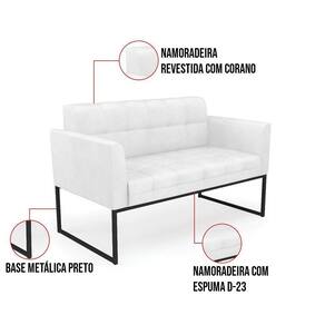 Você gosta de colecionar vários momentos memoráveis com sua família e amigos? Que tal recebê-los, com móveis de altíssima qualidade que só a DRossi tem? O Kit 01 Namoradeira e 01 Poltrona Elisa é adequado para você! Seu design retrô é a grande tendência do momento. Pode ser em diversos espaços da casa, em salas, hall de entrada, quartos, cozinhas, varanda, sacada, escritório, dentre outros. Contém as seguintes características: A estrutura é feita de madeira de Eucalipto 100% de reflorestamento, e a Base Metálica Industrial Preto, além de ser resistente e durável, suporta em média até 120 kg. Assento, encosto e braços, contém enchimento de espuma D-23 e é estofado em tecido Corano, no tom Branco, que oferece muito conforto e resistência ao sentar, com aquela sensação de maciez e aconchego. Possui também, detalhes de costura no encosto e assento, resultando em um acabamento impecável, conferindo muito mais valor e elegância ao seu espaço. Para complementar a decoração com esse lindo kit, a dica é utilizar mantas, almofadas ou vasinho de flor. E pronto, seu cantinho estará perfeito para descansar e relaxar! Aqui, você encontra várias opções, para que seus amigos e familiares se sintam acolhidos. Garanta já seu kit.