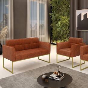 Você gosta de colecionar vários momentos memoráveis com sua família e amigos? Que tal recebê-los, com móveis de altíssima qualidade que só a DRossi tem? O Kit 01 Namoradeira e 01 Poltrona Elisa é adequado para você! Seu design retrô é a grande tendência do momento. Pode ser em diversos espaços da casa, em salas, hall de entrada, quartos, cozinhas, varanda, ada, escritório, dentre outros. Contém as seguintes características: A estrutura é feita de madeira de Eucalipto 100% de reflorestamento, e a Base Metálica Industrial Dourado, além de ser resistente e durável, suporta em média até 120 kg. Assento, encosto e braços, contém enchimento de espuma D-23 e é estofado em tecido Corano, no tom Nozes, que oferece muito conforto e resistência ao sentar, com aquela sensação de maciez e aconchego. Possui também, detalhes de costura no encosto e assento, resultando em um acabamento impecável, conferindo muito mais valor e elegância ao seu espaço. Para complementar a decoração com esse lindo kit, a dica é utilizar mantas, almofadas ou vasinho de flor. E pronto, seu cantinho estará perfeito para descansar e relaxar! Aqui, você encontra várias opções, para que seus amigos e familiares se sintam acolhidos. Garanta já seu kit.