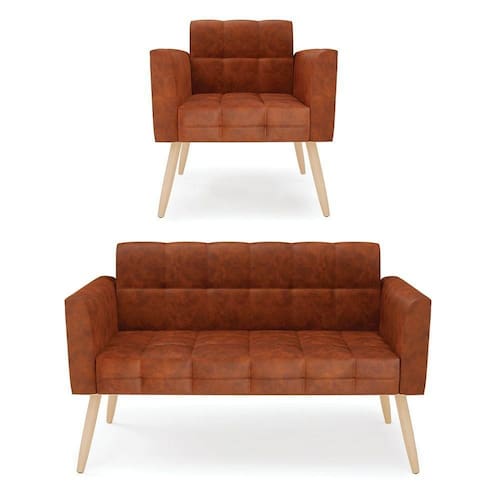 Você irá receber: 01 Sofá Namoradeira e 01 Poltrona - Entregue em: 02 Volumes