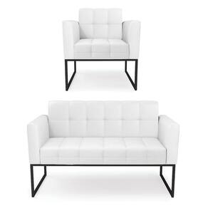 Kit 1 Sofá Namoradeira E 1 Poltrona Elisa Corino Base Metálica Industrial Preto - D'rossi Cor Branco