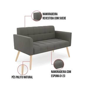 Você gosta de colecionar vários momentos memoráveis com sua família e amigos? Que tal recebê-los, com móveis de altíssima qualidade que só a DRossi tem? O Kit 01 Namoradeira e 01 Poltrona Elisa é adequado para você! Seu design retrô é a grande tendência do momento. Pode ser em diversos espaços da casa, em salas, hall de entrada, quartos, cozinhas, varanda, ada, escritório, dentre outros. Contém as seguintes características: A estrutura é feita de madeira de Eucalipto 100% de reflorestamento, e os Pés Palito , além de serem resistentes e duráveis, suportam em média até 120 kg. Assento, encosto e braços, contém enchimento de espuma D-23 e é estofado em tecido Suede, que oferece muito conforto e resistência ao sentar, com aquela sensação de maciez e aconchego. Possui também, detalhes de costura no encosto e assento, resultando em um acabamento impecável, conferindo muito mais valor e elegância ao seu espaço. Para complementar a decoração com esse lindo kit, a dica é utilizar mantas, almofadas ou vasinho de flor. E pronto, seu cantinho estará perfeito para descansar e relaxar! Aqui, você encontra várias opções, para que seus amigos e familiares se sintam acolhidos. Garanta já seu kit.