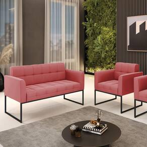 Estrutura: Madeira Eucalipto Espuma: D-23 Tecido: Veludo Luxo Tipo de pés: Base Metálica Industrial Peso suportado: Até 120 Kg Garantia: 90 dias contra defeito de fabricação Montagem: O produto vai montado, apenas rosquear os pés Instruções de limpeza: Utilizar um pano limpo e levemente úmido Você irá receber: 01 Sofá Namoradeira e 01 Poltrona - Entregue em: 02 Volumes