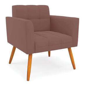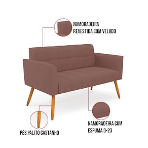 Kit 1 Sofá Namoradeira E 1 Poltrona Elisa Veludo Rosê Pés Palito Castanho - D'rossi