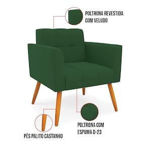 Kit 1 Sofá Namoradeira E 1 Poltrona Elisa Veludo Verde Pés Palito Castanho - D'rossi