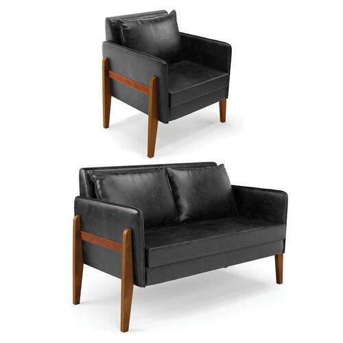 Ter uma casa com móveis de qualidade e que dure por anos é o sonho de qualquer pessoa. Afinal, quem não gosta de estar em um ambiente que transmita a sensação de acolhimento não é mesmo? Com este Kit 01 Namoradeira e 01 Poltrona Lana, você consegue levar aconchego e leveza a qualquer ambiente. Confeccionado em madeira de eucalipto proveniente de reflorestamento, suportando em média até 120 Kg, garantindo uma maior resistência e Corano no tom Preto, o estofamento do assento e encosto é composto de espuma D-23, na lateral vem com uma tira de corano, que dá um charme todo especial ao produto. Olha só que legal, as almofadas soltas além de serem totalmente confortáveis e extremamente macias, dão a opção de mudar a cara do ambiente quando quiser. Então, que tal aproveitar a nossa super novidade? Aproveite!