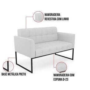 Você gosta de colecionar vários momentos memoráveis com sua família e amigos? Que tal recebê-los, com móveis de altíssima qualidade que só a DRossi tem? O Kit 01 Namoradeira e 01 Poltrona Elisa é adequado para você! Seu design retrô é a grande tendência do momento. Pode ser em diversos espaços da casa, em salas, hall de entrada, quartos, cozinhas, varanda, ada, escritório, dentre outros. Contém as seguintes características: A estrutura é feita de madeira de Eucalipto 100% de reflorestamento, e a Base Industrial Metálica Preto, além de ser resistente e durável, suporta em média até 120 kg. Assento, encosto e braços, contém enchimento de espuma D-23 e é estofado em tecido Linho, que oferece muito conforto e resistência ao sentar, com aquela sensação de maciez e aconchego. Possui também, detalhes de costura no encosto e assento, resultando em um acabamento impecável, conferindo muito mais valor e elegância ao seu espaço. Para complementar a decoração com esse lindo kit, a dica é utilizar mantas, almofadas ou vasinho de flor. E pronto, seu cantinho estará perfeito para descansar e relaxar! Aqui, você encontra várias opções, para que seus amigos e familiares se sintam acolhidos. Garanta já seu kit.