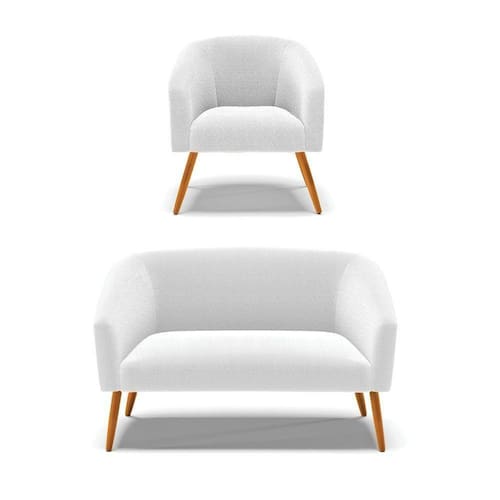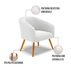 Kit 1 Sofá Namoradeira E 1 Poltrona Stella Bouclê Pés Palito Castanho - D`rossi Cor Off White