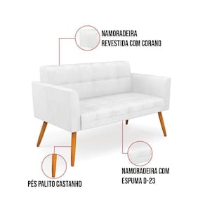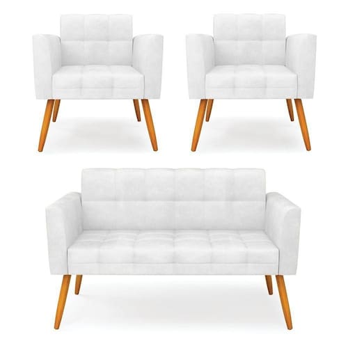 Você gosta de colecionar vários momentos memoráveis com sua família e amigos? Que tal recebê-los, com móveis de altíssima qualidade que só a DRossi tem? O Kit 01 Namoradeira e 02 Poltronas Elisa é adequado para você! Seu design retrô é a grande tendência do momento. Pode ser em diversos espaços da casa, em salas, hall de entrada, quartos, cozinhas, varanda, ada, escritório, dentre outros. Contém as seguintes características: A estrutura é feita de madeira de Eucalipto 100% de reflorestamento, e os Pés Palito Castanho, além de serem resistentes e duráveis, suportam em média até 120 kg. Assento, encosto e braços, contém enchimento de espuma D-23 e é estofado em tecido Corano, no tom Branco, que oferece muito conforto e resistência ao sentar, com aquela sensação de maciez e aconchego. Possui também, detalhes de costura no encosto e assento, resultando em um acabamento impecável, conferindo muito mais valor e elegância ao seu espaço. Para complementar a decoração com esse lindo kit, a dica é utilizar mantas, almofadas ou vasinho de flor. E pronto, seu cantinho estará perfeito para descansar e relaxar! Aqui, você encontra várias opções, para que seus amigos e familiares se sintam acolhidos. Garanta já seu kit.