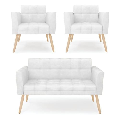 Você irá receber: 01 Sofá Namoradeira e 02 Poltronas - Entregue em: 02 Volumes