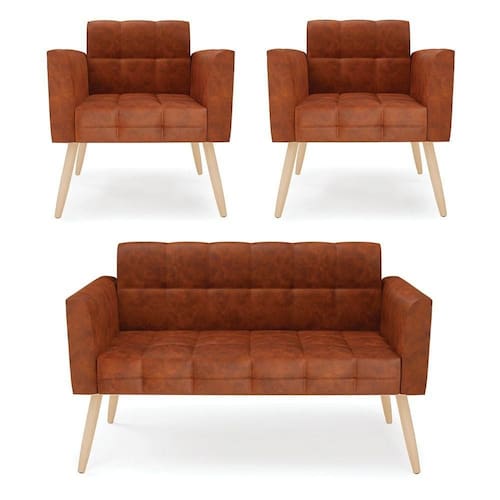Você irá receber: 01 Sofá Namoradeira e 02 Poltronas - Entregue em: 02 Volumes