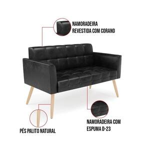 Você gosta de colecionar vários momentos memoráveis com sua família e amigos? Que tal recebê-los, com móveis de altíssima qualidade que só a DRossi tem? O Kit 01 Namoradeira e 02 Poltronas Elisa é adequado para você! Seu design retrô é a grande tendência do momento. Pode ser em diversos espaços da casa, em salas, hall de entrada, quartos, cozinhas, varanda, ada, escritório, dentre outros. Contém as seguintes características: A estrutura é feita de madeira de Eucalipto 100% de reflorestamento, e os Pés Palito , além de serem resistentes e duráveis, suportam em média até 120 kg. Assento, encosto e braços, contém enchimento de espuma D-23 e é estofado em tecido Corano, no tom Preto, que oferece muito conforto e resistência ao sentar, com aquela sensação de maciez e aconchego. Possui também, detalhes de costura no encosto e assento, resultando em um acabamento impecável, conferindo muito mais valor e elegância ao seu espaço. Para complementar a decoração com esse lindo kit, a dica é utilizar mantas, almofadas ou vasinho de flor. E pronto, seu cantinho estará perfeito para descansar e relaxar! Aqui, você encontra várias opções, para que seus amigos e familiares se sintam acolhidos. Garanta já seu kit.