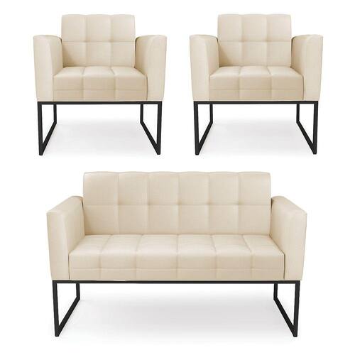 Você gosta de colecionar vários momentos memoráveis com sua família e amigos? Que tal recebê-los, com móveis de altíssima qualidade que só a D'Rossi tem? O Kit 01 Namoradeira e 02 Poltronas Elisa é adequado para você! Seu design retrô é a grande tendência do momento. Pode ser utilizado em diversos espaços da casa, em salas, hall de entrada, quartos, cozinhas, varanda, sacada, escritório, dentre outros. Contém as seguintes características: A estrutura é feita de madeira de Eucalipto 100% de reflorestamento, e a Base Metálica Industrial Preto, além de ser resistente e durável, suporta em média até 120 kg. Assento, encosto e braços, contém enchimento de espuma D-23 e é estofado em tecido Corino, no tom Bege, que oferece muito conforto e resistência ao sentar, com aquela sensação de maciez e aconchego. Possui também, detalhes de costura no encosto e assento, resultando em um acabamento impecável, conferindo muito mais valor e elegância ao seu espaço. Para complementar a decoração com esse lindo kit, a dica é utilizar mantas, almofadas ou vasinho de flor. E pronto, seu cantinho estará perfeito para descansar e relaxar! Aqui, você encontra várias opções, para que seus amigos e familiares se sintam acolhidos. Garanta já seu kit.