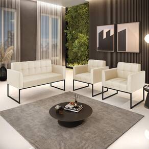 Você irá receber: 01 Sofá Namoradeira e 02 Poltronas - Entregue em: 03 Volumes