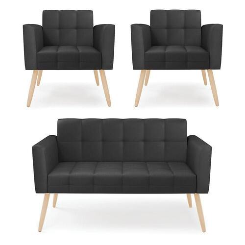 Você irá receber: 01 Sofá Namoradeira e 02 Poltronas - Entregue em: 02 Volumes