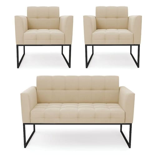 Você gosta de colecionar vários momentos memoráveis com sua família e amigos? Que tal recebê-los, com móveis de altíssima qualidade que só a DRossi tem? O Kit 01 Namoradeira e 02 Poltronas Elisa é adequado para você! Seu design retrô é a grande tendência do momento. Pode ser em diversos espaços da casa, em salas, hall de entrada, quartos, cozinhas, varanda, sacada, escritório, dentre outros. Contém as seguintes características: A estrutura é feita de madeira de Eucalipto 100% de reflorestamento, e a Base Industrial Metálica Preto, além de ser resistente e durável, suporta em média até 120 kg. Assento, encosto e braços, contém enchimento de espuma D-23 e é estofado em tecido Linho, no tom Bege, que oferece muito conforto e resistência ao sentar, com aquela sensação de maciez e aconchego. Possui também, detalhes de costura no encosto e assento, resultando em um acabamento impecável, conferindo muito mais valor e elegância ao seu espaço. Para complementar a decoração com esse lindo kit, a dica é utilizar mantas, almofadas ou vasinho de flor. E pronto, seu cantinho estará perfeito para descansar e relaxar! Aqui, você encontra várias opções, para que seus amigos e familiares se sintam acolhidos. Garanta já seu kit.