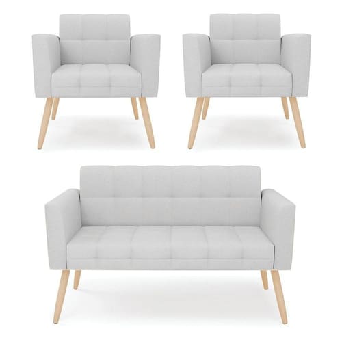 Você gosta de colecionar vários momentos memoráveis com sua família e amigos? Que tal recebê-los, com móveis de altíssima qualidade que só a DRossi tem? O Kit 01 Namoradeira e 02 Poltronas Elisa é adequado para você! Seu design retrô é a grande tendência do momento. Pode ser em diversos espaços da casa, em salas, hall de entrada, quartos, cozinhas, varanda, sacada, escritório, dentre outros. Contém as seguintes características: A estrutura é feita de madeira de Eucalipto 100% de reflorestamento, e os Pés Palito , além de serem resistentes e duráveis, suportam em média até 120 kg. Assento, encosto e braços, contém enchimento de espuma D-23 e é estofado em tecido Linho, no tom Cinza, que oferece muito conforto e resistência ao sentar, com aquela sensação de maciez e aconchego. Possui também, detalhes de costura no encosto e assento, resultando em um acabamento impecável, conferindo muito mais valor e elegância ao seu espaço. Para complementar a decoração com esse lindo kit, a dica é utilizar mantas, almofadas ou vasinho de flor. E pronto, seu cantinho estará perfeito para descansar e relaxar! Aqui, você encontra várias opções, para que seus amigos e familiares se sintam acolhidos. Garanta já seu kit.