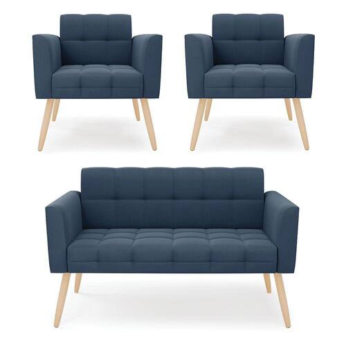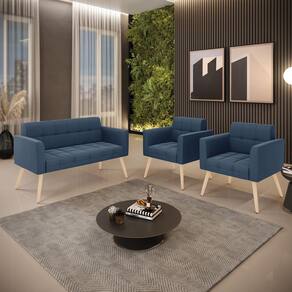 Você gosta de colecionar vários momentos memoráveis com sua família e amigos? Que tal recebê-los, com móveis de altíssima qualidade que só a D'Rossi tem? O Kit 1 Namoradeira 2 Lugares e 2 Poltronas Elisa é adequado para você! Seu design retrô é a grande tendência do momento. Pode ser utilizado em diversos espaços da casa, em salas, hall de entrada, quartos, cozinhas, varanda, sacada, escritório, dentre outros. Contém as seguintes características: A estrutura é feita de madeira de Eucalipto 100% de reflorestamento, e os Pés Palito Natural, além de serem resistentes e duráveis, suportam em média até 120 kg. Assento, encosto e braços, contém enchimento de espuma D-23 e é estofado em tecido Suede, no tom Azul Marinho, que oferece muito conforto e resistência ao sentar, com aquela sensação de maciez e aconchego. Possui também, detalhes de costura no encosto e assento, resultando em um acabamento impecável, conferindo muito mais valor e elegância ao seu espaço. Para complementar a decoração com esse lindo kit, a dica é utilizar mantas, almofadas ou vasinho de flor. E pronto, seu cantinho estará perfeito para descansar e relaxar! Aqui, você encontra várias opções, para que seus amigos e familiares se sintam acolhidos. Garanta já seu kit.