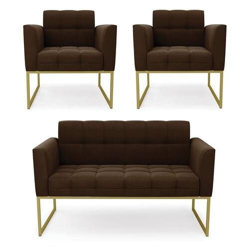 Você irá receber: 01 Sofá Namoradeira e 02 Poltronas - Entregue em: 03 Volumes
