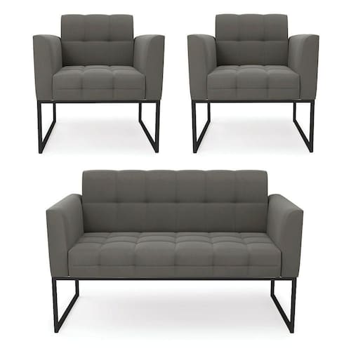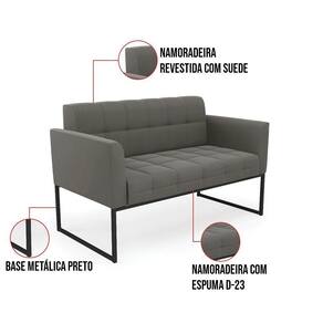 Você gosta de colecionar vários momentos memoráveis com sua família e amigos? Que tal recebê-los, com móveis de altíssima qualidade que só a DRossi tem? O Kit 01 Namoradeira e 02 Poltronas Elisa é adequado para você! Seu design retrô é a grande tendência do momento. Pode ser utilizado em diversos espaços da casa, em salas, hall de entrada, quartos, cozinhas, varanda, sacada, escritório, dentre outros. Contém as seguintes características: A estrutura é feita de madeira de Eucalipto 100% de reflorestamento, e a Base Industrial Metálica Preto, além de ser resistente e durável, suporta em média até 120 kg. Assento, encosto e braços, contém enchimento de espuma D-23 e é estofado em tecido Suede, no tom Grafite, que oferece muito conforto e resistência ao sentar, com aquela sensação de maciez e aconchego. Possui também, detalhes de costura no encosto e assento, resultando em um acabamento impecável, conferindo muito mais valor e elegância ao seu espaço. Para complementar a decoração com esse lindo kit, a dica é utilizar mantas, almofadas ou vasinho de flor. E pronto, seu cantinho estará perfeito para descansar e relaxar! Aqui, você encontra várias opções, para que seus amigos e familiares se sintam acolhidos. Garanta já seu kit.