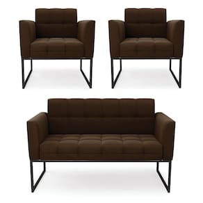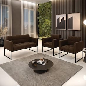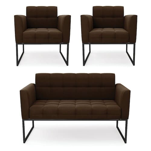 Você gosta de colecionar vários momentos memoráveis com sua família e amigos? Que tal recebê-los, com móveis de altíssima qualidade que só a DRossi tem? O Kit 01 Namoradeira e 02 Poltronas Elisa é adequado para você! Seu design retrô é a grande tendência do momento. Pode ser utilizado em diversos espaços da casa, em salas, hall de entrada, quartos, cozinhas, varanda, sacada, escritório, dentre outros. Contém as seguintes características: A estrutura é feita de madeira de Eucalipto 100% de reflorestamento, e a Base Industrial Metálica Preto, além de ser resistente e durável, suporta em média até 120 kg. Assento, encosto e braços, contém enchimento de espuma D-23 e é estofado em tecido Suede, no tom Marrom, que oferece muito conforto e resistência ao sentar, com aquela sensação de maciez e aconchego. Possui também, detalhes de costura no encosto e assento, resultando em um acabamento impecável, conferindo muito mais valor e elegância ao seu espaço. Para complementar a decoração com esse lindo kit, a dica é utilizar mantas, almofadas ou vasinho de flor. E pronto, seu cantinho estará perfeito para descansar e relaxar! Aqui, você encontra várias opções, para que seus amigos e familiares se sintam acolhidos. Garanta já seu kit.