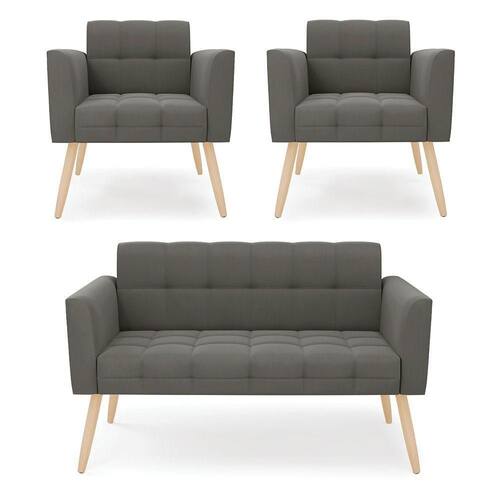 Você irá receber: 01 Sofá Namoradeira e 02 Poltronas - Entregue em: 02 Volumes