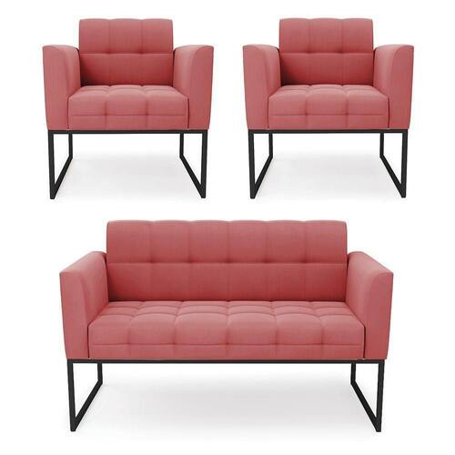 Você gosta de colecionar vários momentos memoráveis com sua família e amigos? Que tal recebê-los, com móveis de altíssima qualidade que só a DRossi tem? O Kit 01 Namoradeira e 02 Poltronas Elisa é adequado para você! Seu design retrô é a grande tendência do momento. Pode ser utilizado em diversos espaços da casa, em salas, hall de entrada, quartos, cozinhas, varanda, sacada, escritório, dentre outros. Contém as seguintes características: A estrutura é feita de madeira de Eucalipto 100% de reflorestamento, e a Base Industrial Metálica Preto, além de ser resistente e durável, suporta em média até 120 kg. Assento, encosto e braços, contém enchimento de espuma D-23 e é estofado em tecido Suede, no tom Rosê, que oferece muito conforto e resistência ao sentar, com aquela sensação de maciez e aconchego. Possui também, detalhes de costura no encosto e assento, resultando em um acabamento impecável, conferindo muito mais valor e elegância ao seu espaço. Para complementar a decoração com esse lindo kit, a dica é utilizar mantas, almofadas ou vasinho de flor. E pronto, seu cantinho estará perfeito para descansar e relaxar! Aqui, você encontra várias opções, para que seus amigos e familiares se sintam acolhidos. Garanta já seu kit.