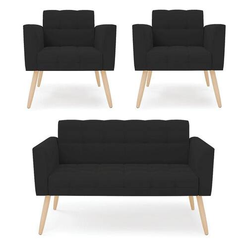 Você irá receber: 01 Sofá Namoradeira e 02 Poltronas - Entregue em: 02 Volumes