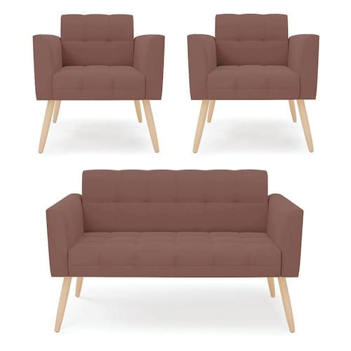 Você irá receber: 01 Sofá Namoradeira e 02 Poltronas - Entregue em: 02 Volumes