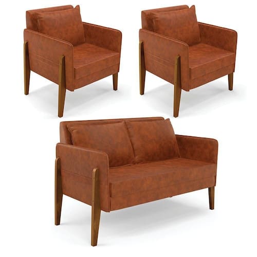 Ter uma casa com móveis de qualidade e que dure por anos é o sonho de qualquer pessoa. Afinal, quem não gosta de estar em um ambiente que transmita a sensação de acolhimento não é mesmo? Com este Kit 01 Namoradeira e 02 Poltronas Lana, você consegue levar aconchego e leveza a qualquer ambiente. Confeccionado em madeira de eucalipto proveniente de reflorestamento, suportando em média até 120 Kg, garantindo uma maior resistência e Corano, o estofamento do assento e encosto é composto de espuma D-23, na lateral vem com uma tira de corano, que dá um charme todo especial ao produto. Olha só que legal, as almofadas soltas além de serem totalmente confortáveis e extremamente macias, dão a opção de mudar a cara do ambiente quando quiser. Então, que tal aproveitar a nossa super novidade? Aproveite!