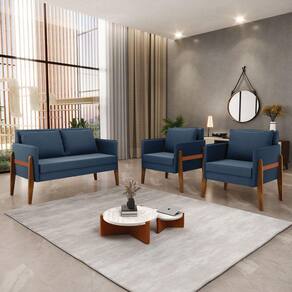 Ter uma casa com móveis de qualidade e que dure por anos é o sonho de qualquer pessoa. Afinal, quem não gosta de estar em um ambiente que transmita a sensação de acolhimento não é mesmo? Com este Kit 01 Namoradeira e 02 Poltronas Lana, você consegue levar aconchego e leveza a qualquer ambiente. Confeccionado em madeira de eucalipto proveniente de reflorestamento, suportando em média até 120 Kg, garantindo uma maior resistência e durabilidade ao conjunto, revestido em tecido Suede no tom Azul Marinho, o estofamento do assento e encosto é composto de espuma D-23, na lateral vem com uma tira de corano, que dá um charme todo especial ao produto. Olha só que legal, as almofadas soltas além de serem totalmente confortáveis e extremamente macias, dão a opção de mudar a cara do ambiente quando quiser. Então, que tal aproveitar a nossa super novidade? Aproveite!